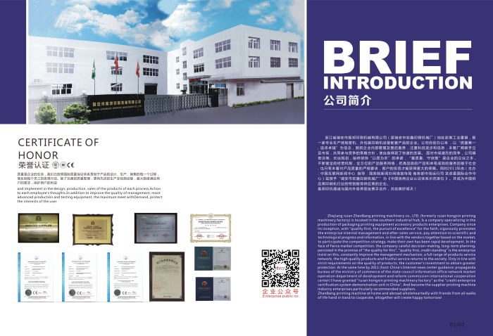 瑞安市振邦印刷機械有限公司地處浙南工業重鎮,是一家專業生產外包裝印刷機設備及配套產品的企業,主要產品有:柔版印刷機模切機檢標機、復卷品檢機、紙吸管機分切機系列不干膠印刷設備等;是中國印刷技術協會會員單位。